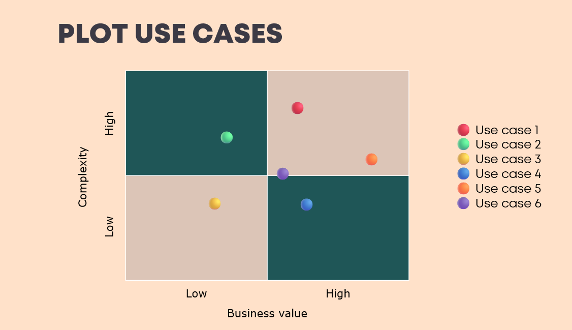 Take all submitted business cases and place them in the quadrant. Involve different stakeholders in this exercise—different perspectives lead to better decisions.